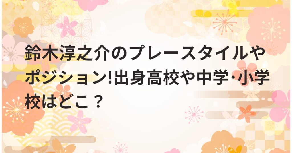 鈴木淳之介のプレースタイルやポジション!出身高校や中学・小学校はどこ?